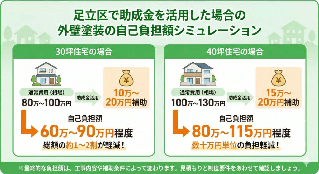 足立区で助成金を活用した場合の外壁塗装の自己負担額