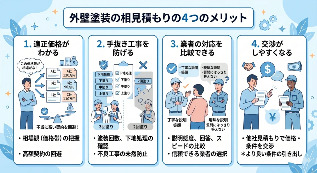 外壁塗装の相見積もりの4つのメリット