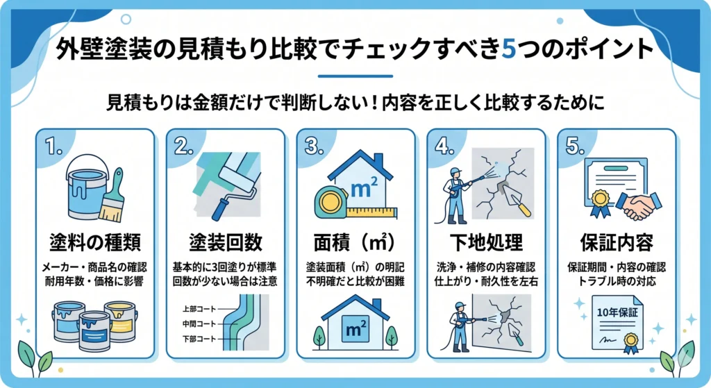 外壁塗装の見積もり比較でチェックすべき5つのポイント