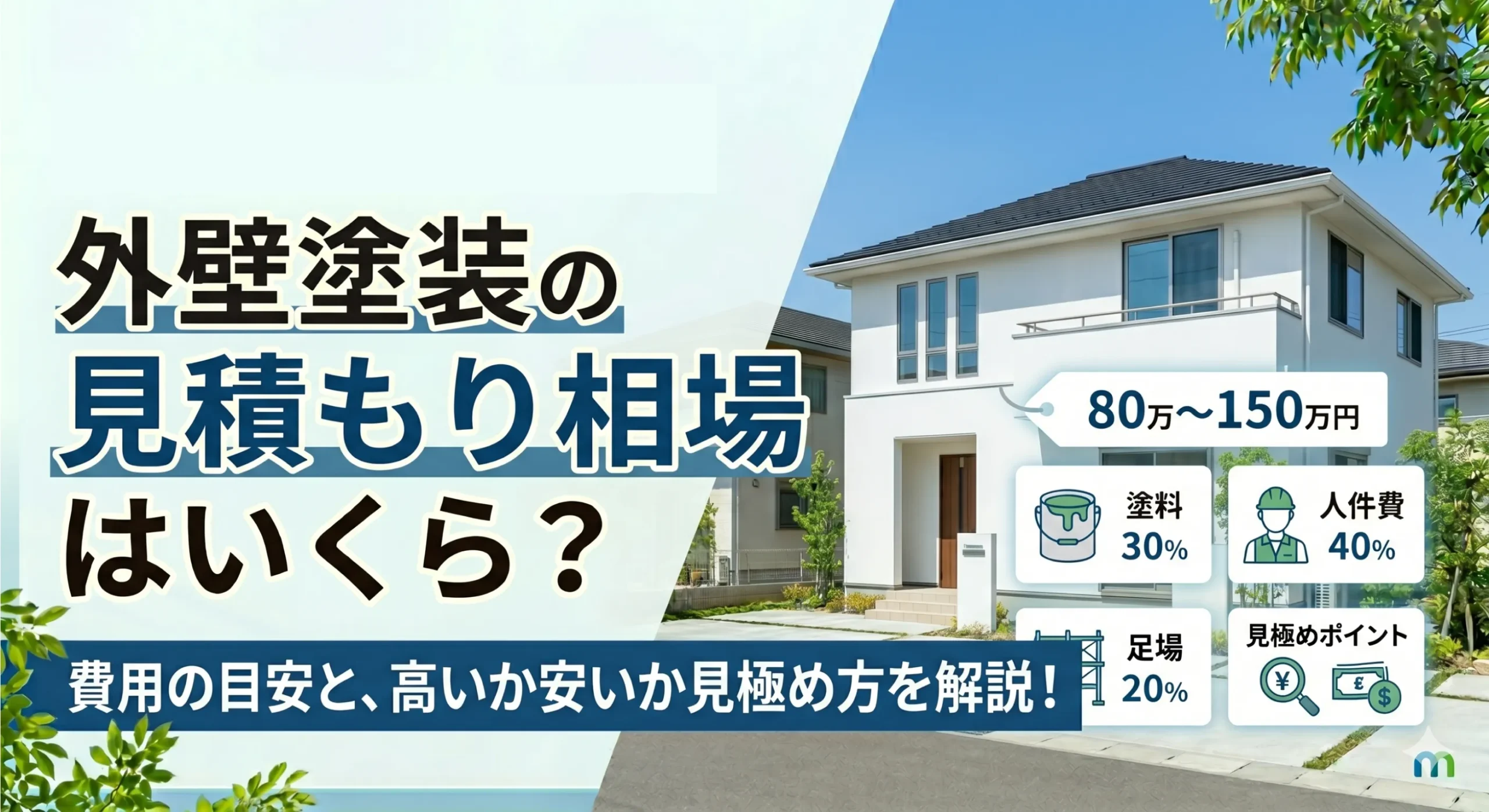 外壁塗装の見積もり相場は、費用感をつかむうえで役立つ目安です。ただし、相場はあくまで一般的な参考価格であり、実際の見積もりは建物の状態や塗料、工事内容によって大きく変わります。