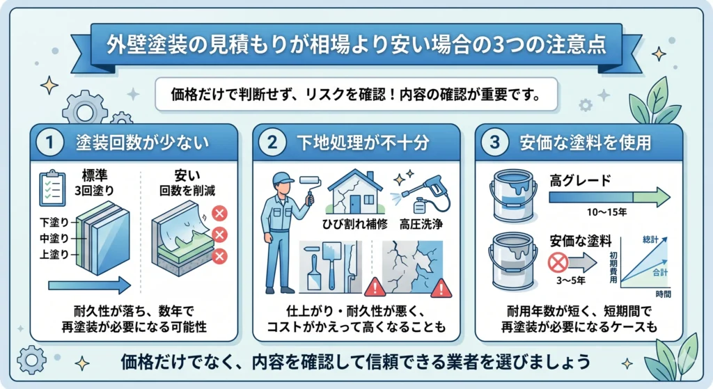 外壁塗装の見積もりが相場より安い場合の3つの注意点