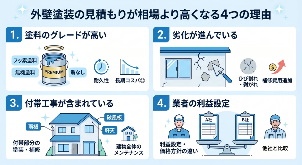 外壁塗装の見積もりが相場より高くなる4つの理由