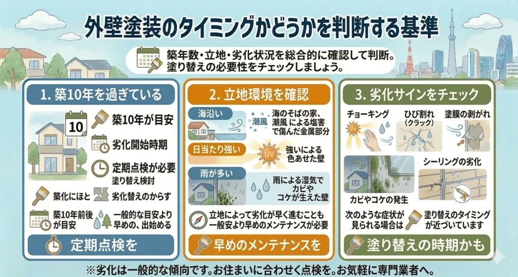 外壁塗装のタイミングかどうかを判断する基準