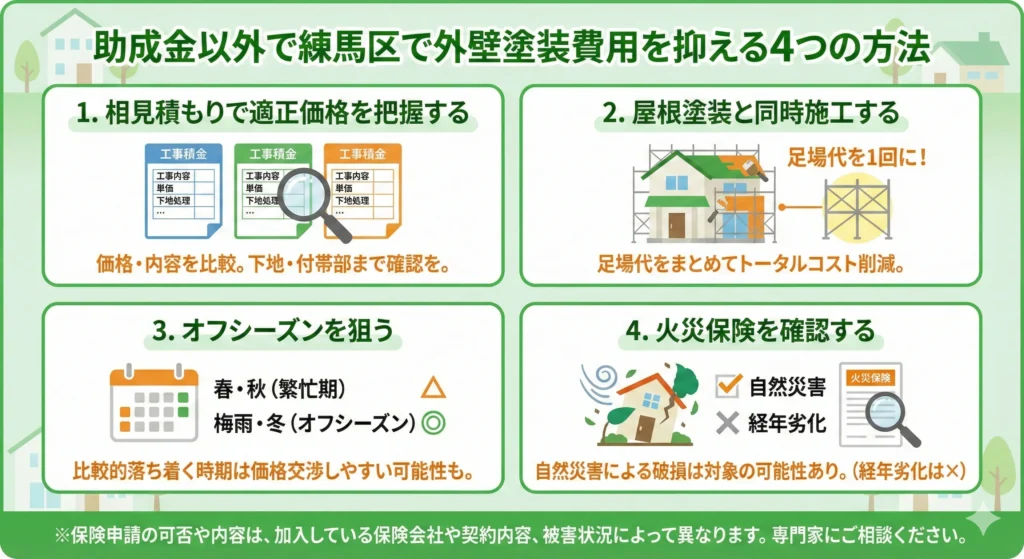 助成金以外で練馬区で外壁塗装費用を抑える4つの方法
