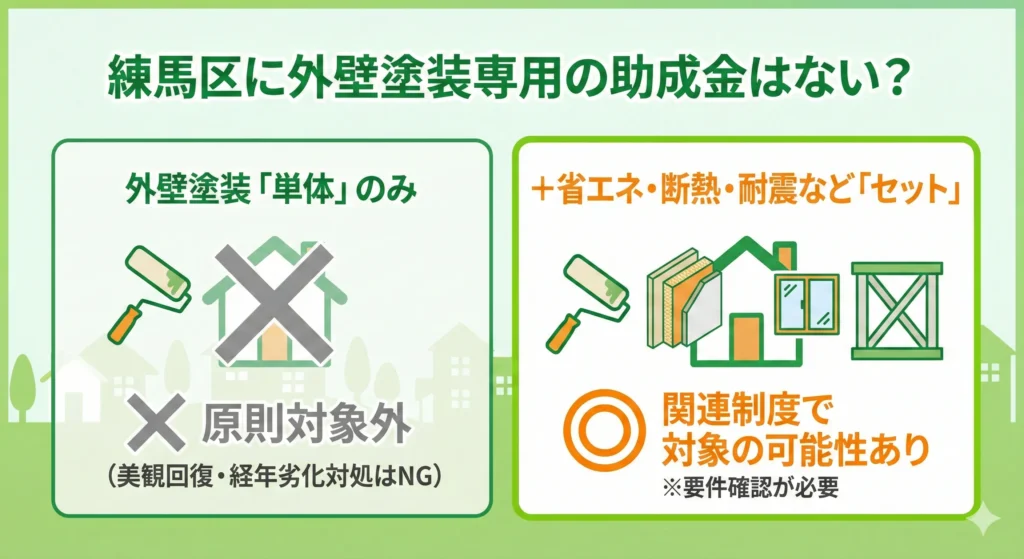 練馬区には「外壁塗装のみ」を対象とした専用の助成金制度は基本的にありません。